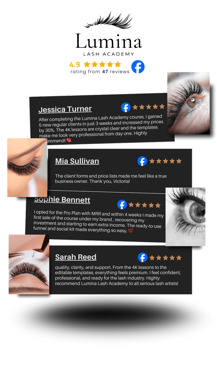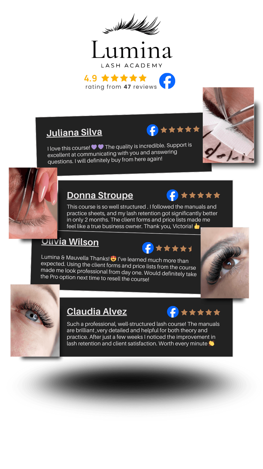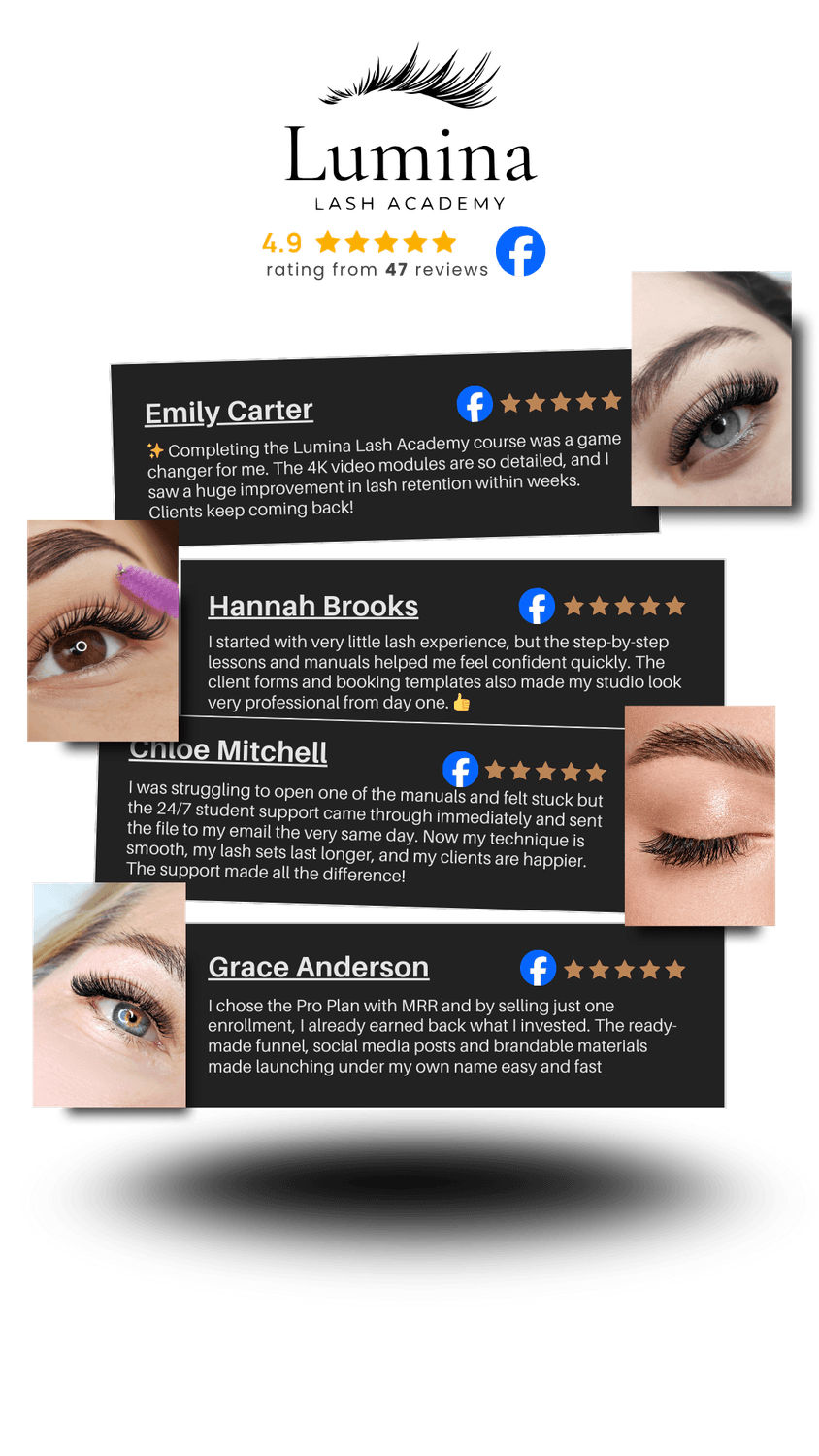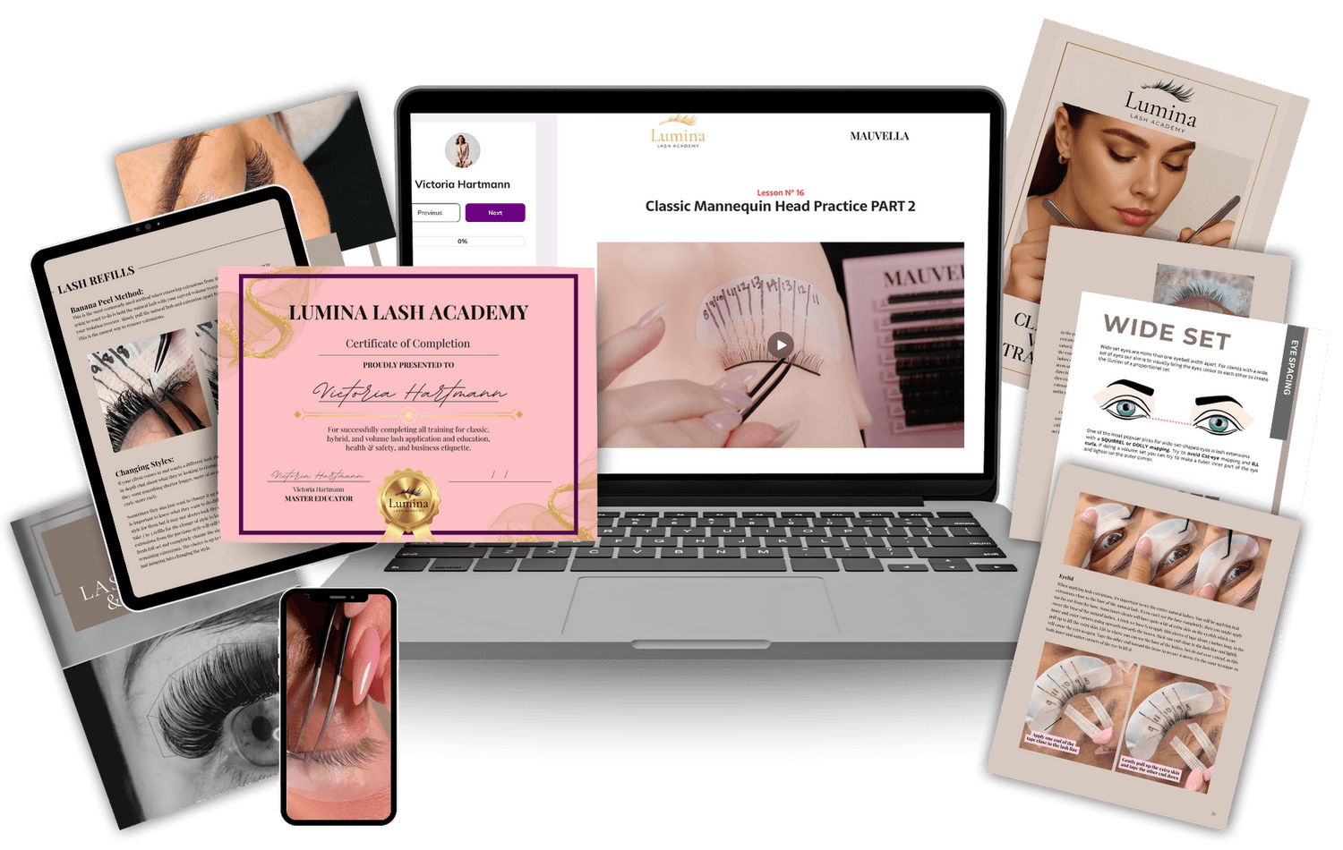 Lumina Lash Academy was designed to eliminate every barrier, giving you a complete, professional lash training experience from home!